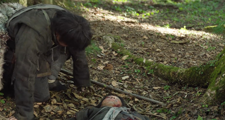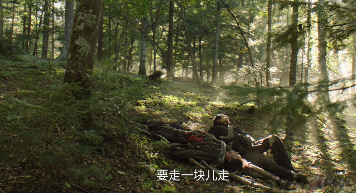 李乃文饰演的老汤,在逃亡途中,遇到了一位其他队伍的抗联同志,肠子都溜出来了。