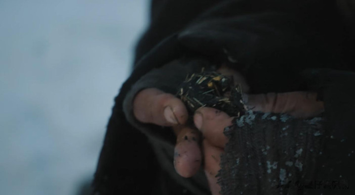 饿急的他,看着地上的马粪,趴在地上,扒开马粪,找到马粪里没有被完全消化的玉米粒,拿着冰雪揉搓一番,便迫不及待地吃了起来。