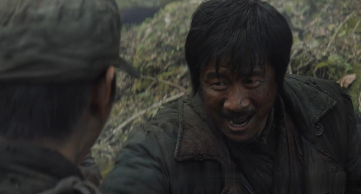 第一集开头,就是胡军饰演的老山东,在队伍被打散后,孤身赶往和队伍同志商量好的,突围出去的汇合点。